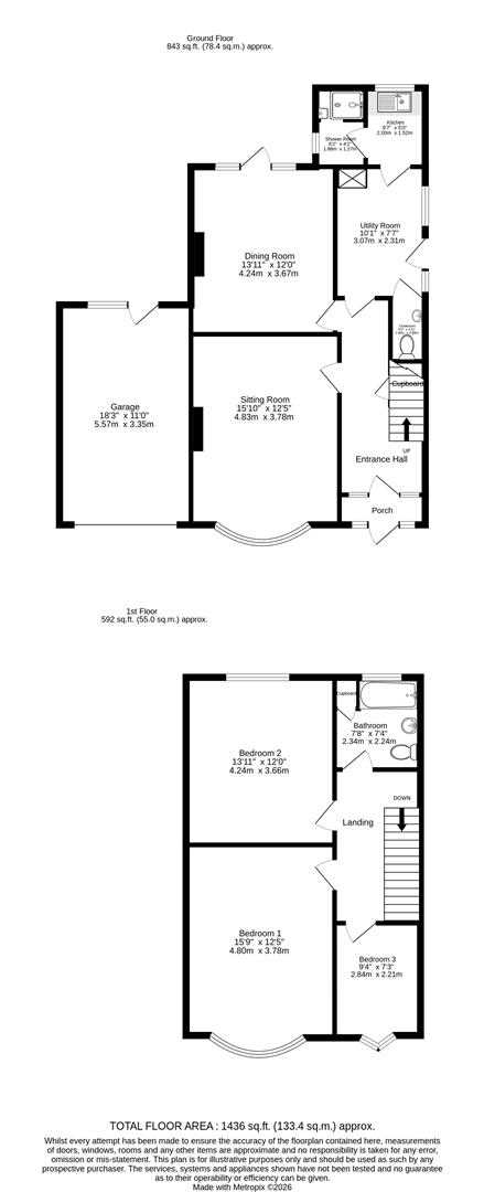 Shower Room - 1.88m x 1.27m (6'2 x 4'2)Frosted window to rear. Shower cubicle with tiled surround. Wash-hand basin. Tiled floor. Radiator.