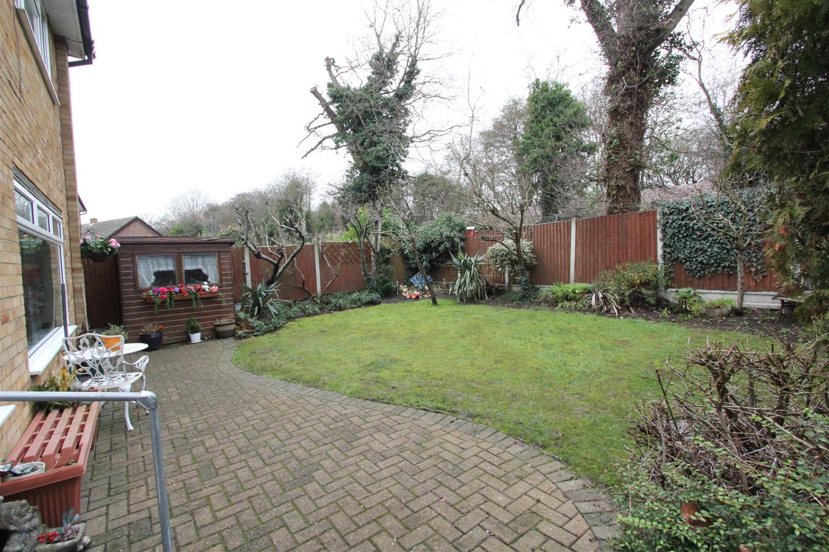 To the front of the property is a low maintenance garden with a private driveway leading up to the GARAGE: 16'7 x 7'9 with garage door, electric light/power and door to the garden. A side gate leads into the attractively landscaped back garden with central lawn, well-stocked flowerbed borders, patio area, fencing for privacy and a GARDEN SHED.