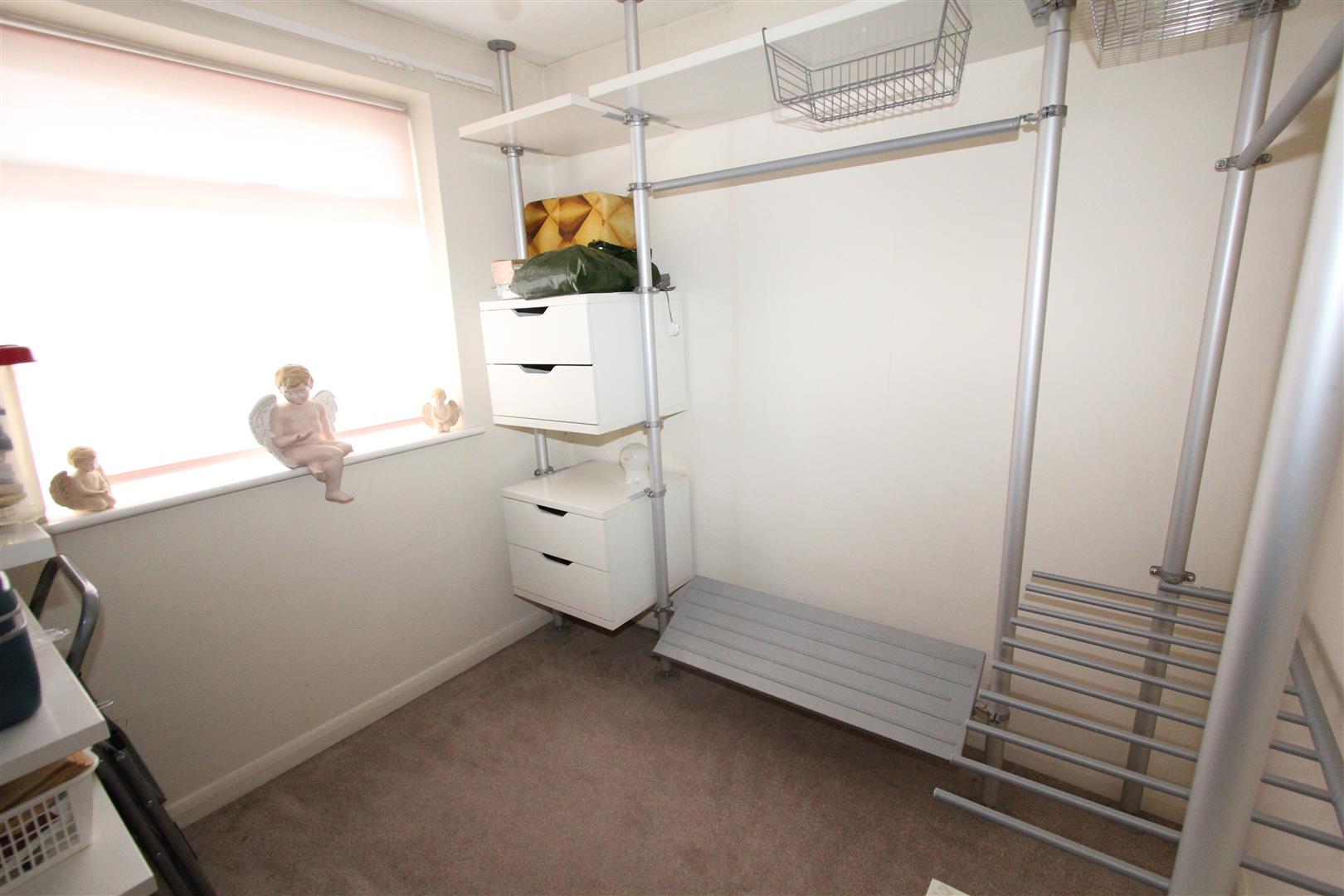 Bedroom Three - 2.46m x 2.36m (8'1 x 7'9)Window to front. Fitted shelving, storage cupboard and wardrobe.