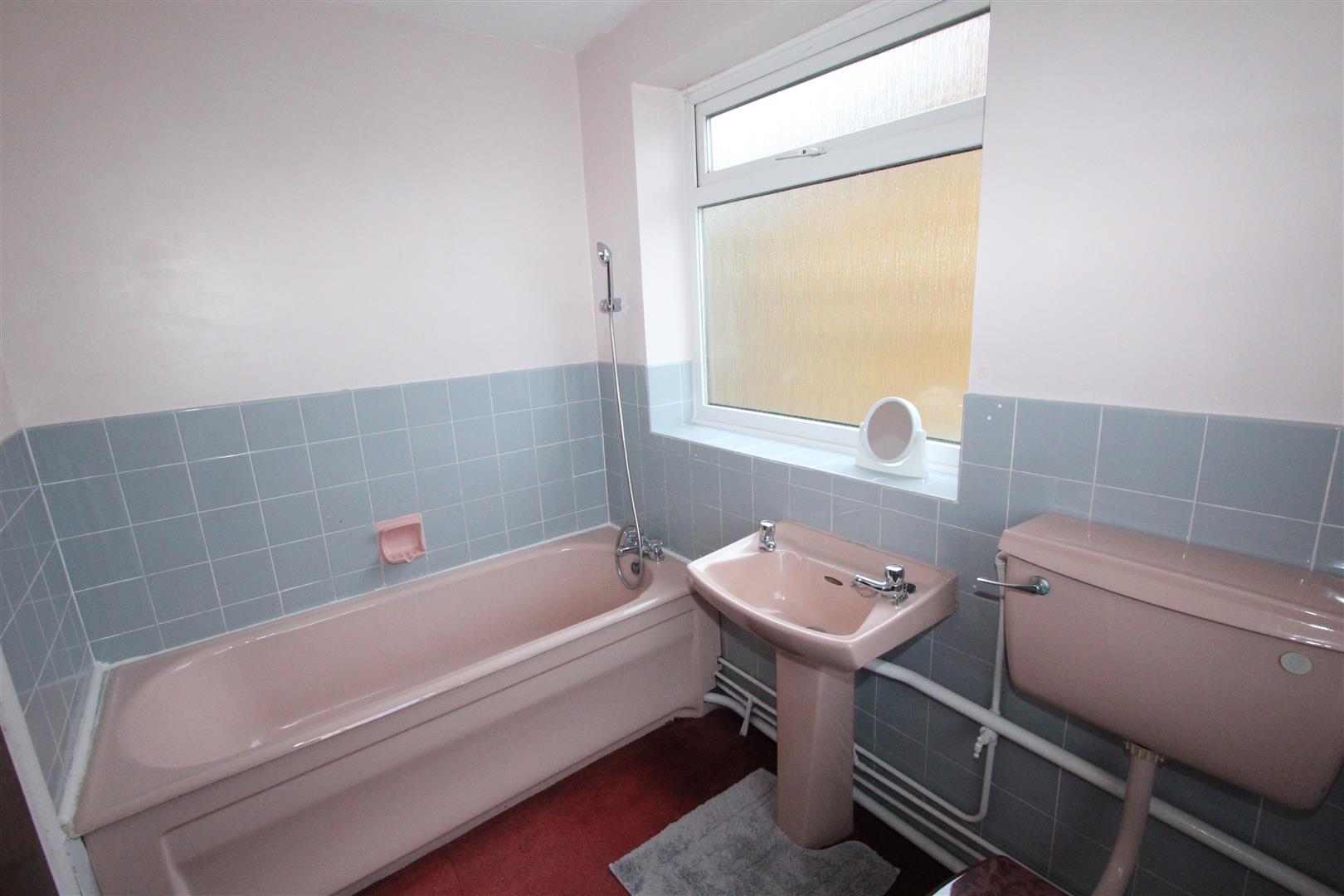 Bathroom - 2.51m x 1.70m (8'3 x 5'7)Frosted windows to rear and side. Panel bath with shower attachment. Low-level wc. Wash-hand basin. Half-tiled walls.