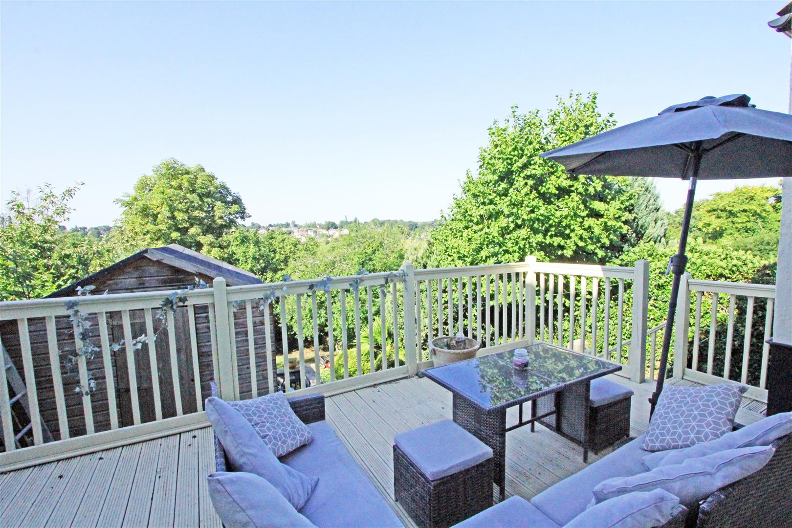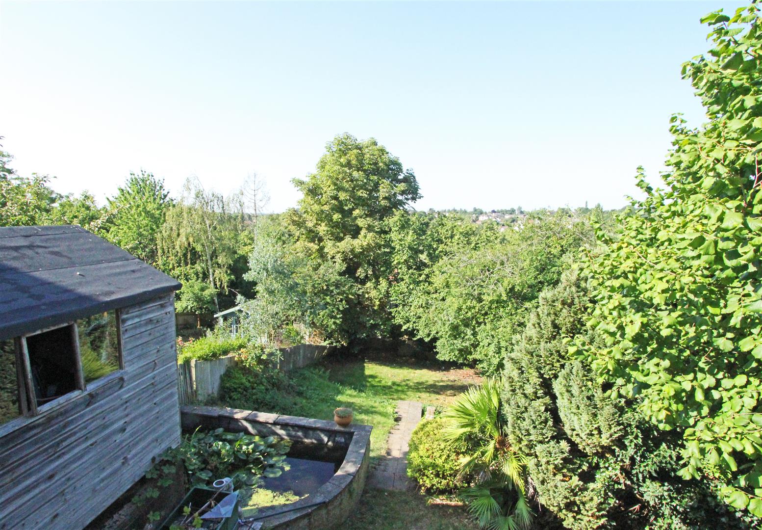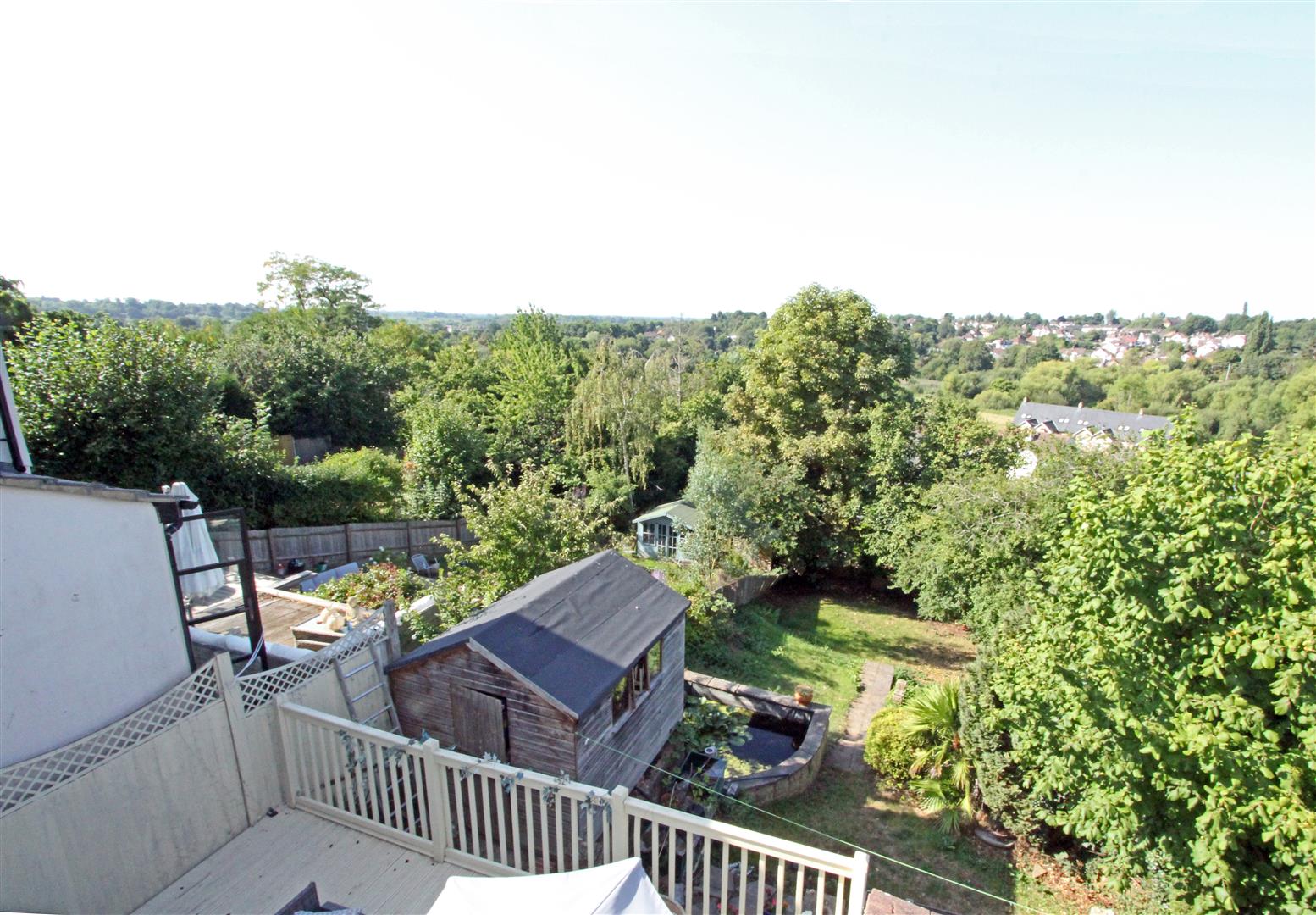 The front garden is steep with steps down to the front door and a driveway down to the garage. To the rear of the house is a good-sized raised area of decking with lovely views. Steps lead down the the garden with a garden store under the utility and door back into the garage. The back garden is large and sloping with a garden pond, shed, central steps and relatively flat lower section with mature tree borders. The garden is surprisingly private, very peaceful and you have to pinch yourself that you are in a town not the countryside.