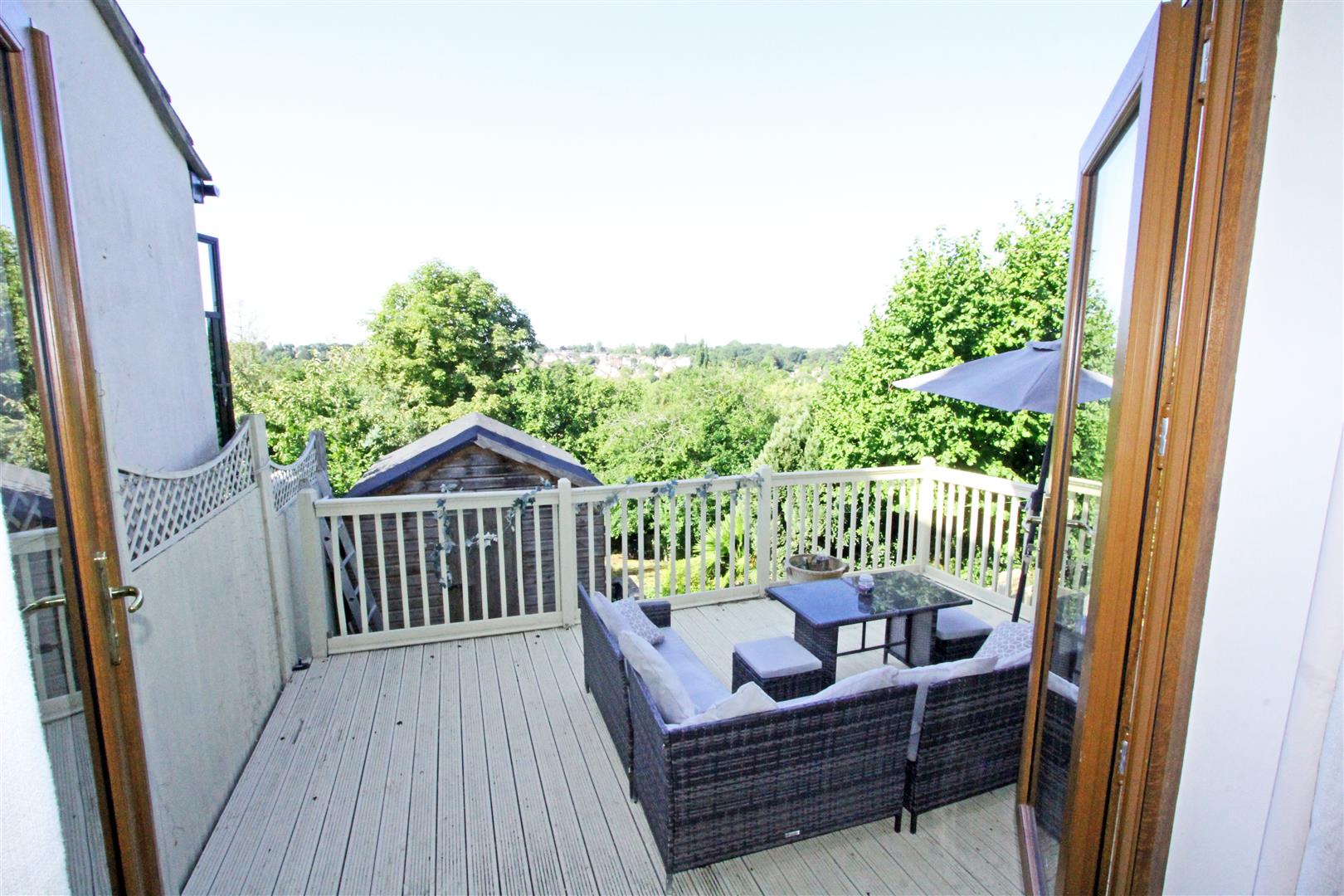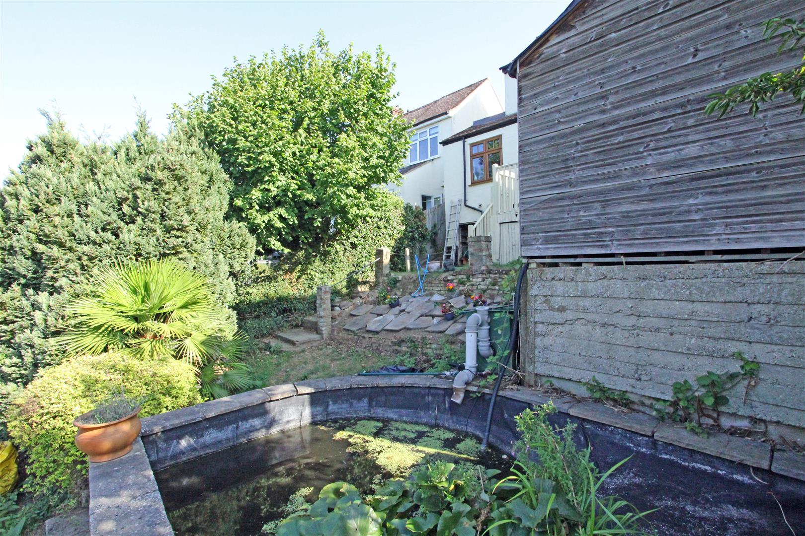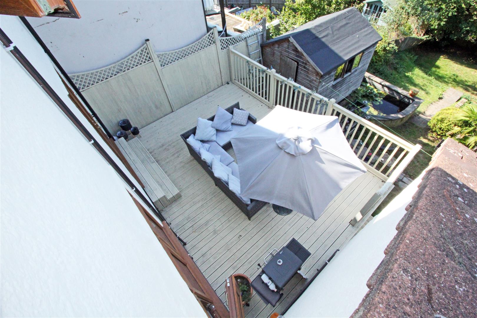 The front garden is steep with steps down to the front door and a driveway down to the garage. To the rear of the house is a good-sized raised area of decking with lovely views. Steps lead down the the garden with a garden store under the utility and door back into the garage. The back garden is large and sloping with a garden pond, shed, central steps and relatively flat lower section with mature tree borders. The garden is surprisingly private, very peaceful and you have to pinch yourself that you are in a town not the countryside.