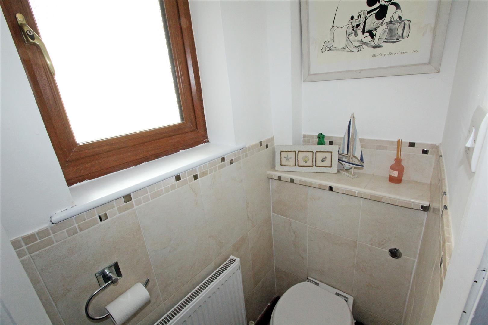 Cloakroom - 1.63m x 0.71m (5'4 x 2'4)Frosted window to side. Low-level wc. Wash-hand basin with tiled splash-back. Tiled floor. Radiator.