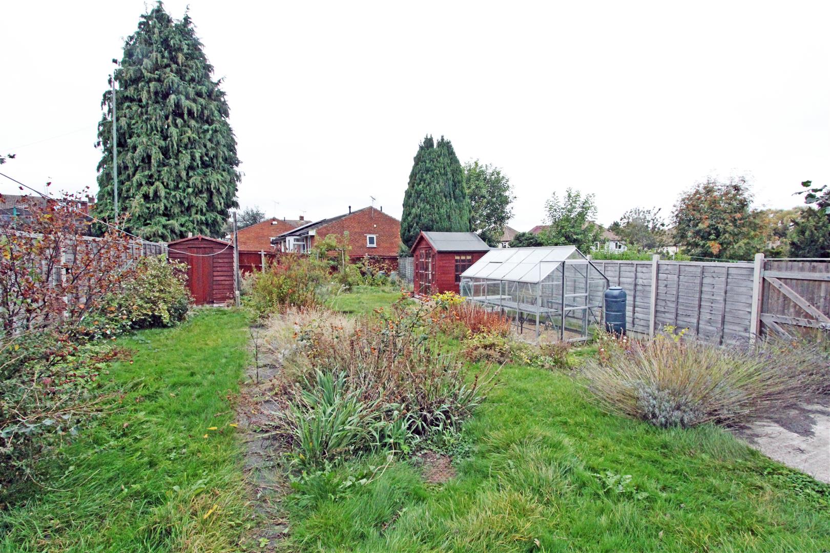 The property has good-sized front garden with a lawn, flowerbeds and a private driveway with ample off-street parking (and space to create more if so needed). The back garden is accessed through the side porch and is large with a central lawn, flowerbeds and a fenced border. GARDEN SHED. GREENHOUSE. SUMMERHOUSE.
