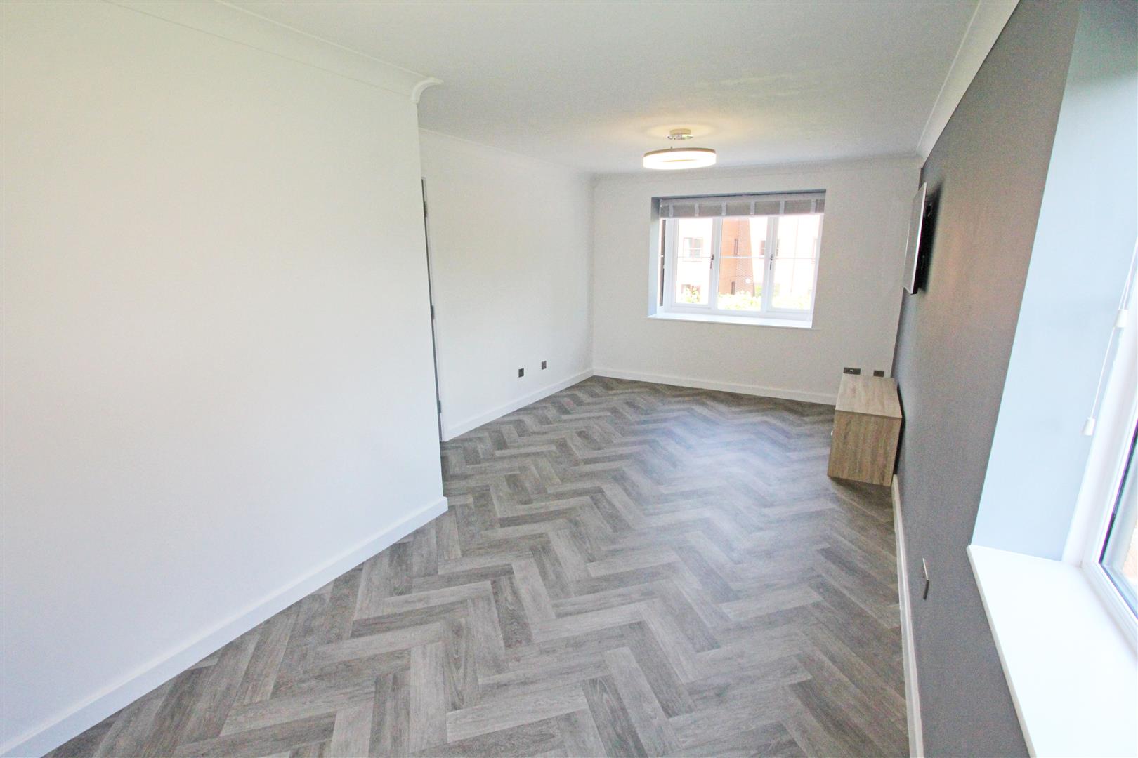 Bedroom One - 3.45m x 2.46m (11'4 x 8'1)Window to front. Grey wood-effect vinyl floor. Wall-mounted heater.